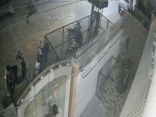 Youth attacking with axes at home door in essential road of Shanti Nagar with household standing behind the gate.