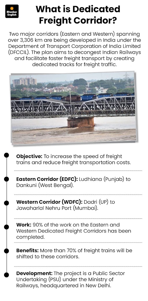 - Western Hall (WDFC): Runs from Dadri (UP) to Jawaharlal Nehru Port (Mumbai).
