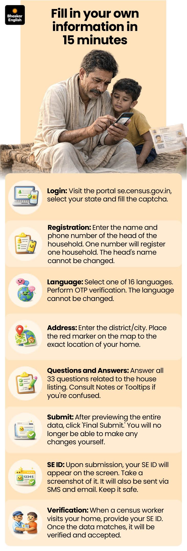 Reply: No, enumerators will themselves come residence and file the knowledge. Folks solely want to offer right info.