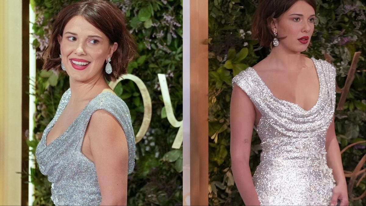 Millie Bobby Brown wears a shimmering silver sequined robe from Tamara Ralph’s Fall/Winter 2025 assortment. (Photographs: X)